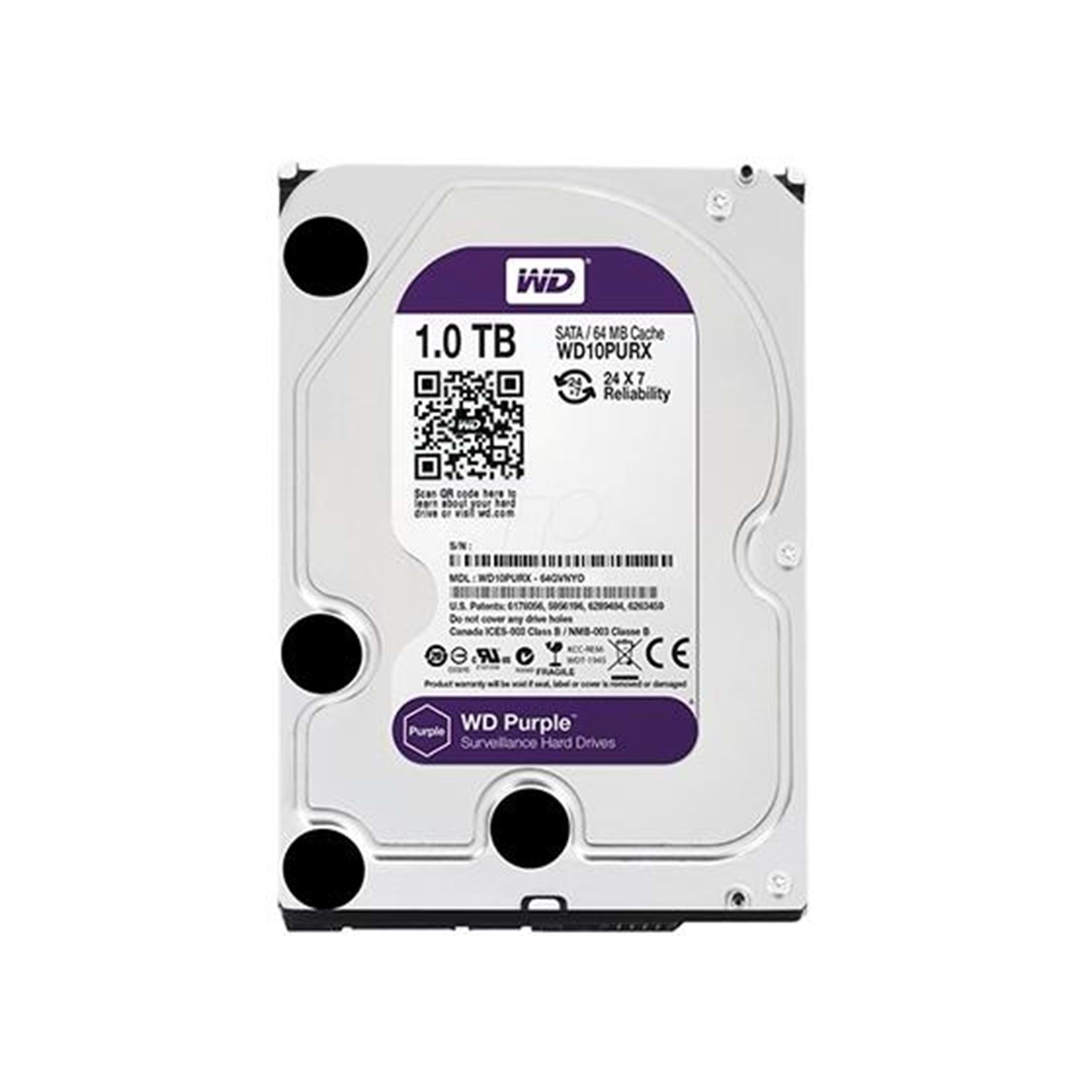 WD 1 TB 3.5 PURPLE SATA3 5400RPM 64MB 7/24 GUVENLIK WD10PURX (2 YIL RESMI DIST GARANTILI)